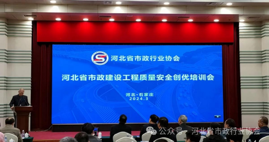 3月18日至19日 ,由河北省市政行业协会举办的“河北省市政建设工程质量安全创优培训”在石家庄举行,协会党支部书记冯玉库、副会长王国章、省住建厅城市更新促进中心主任郁达飞、授课专家老师以及来自全省56家市政单位的近110名代表参加了本次会议。